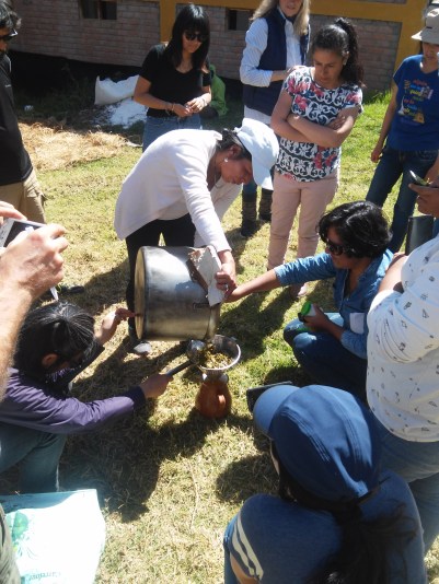 Para el almuerzo, se convocó a una señora local para la preparación de un picante de chocho y refresco de tuna.
