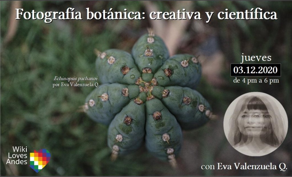 JUEVES 03 DE DICIEMBRE: Fotografía botánica: creativa y científica, con Eva Valenzuela. De 4 a 6 pm. Revisaremos la historia de la fotografía botánica, conceptos básicos de fotografía y plantas, cómo hacer un mini estudio fotográfico casero y cómo componer fotografías de plantas.