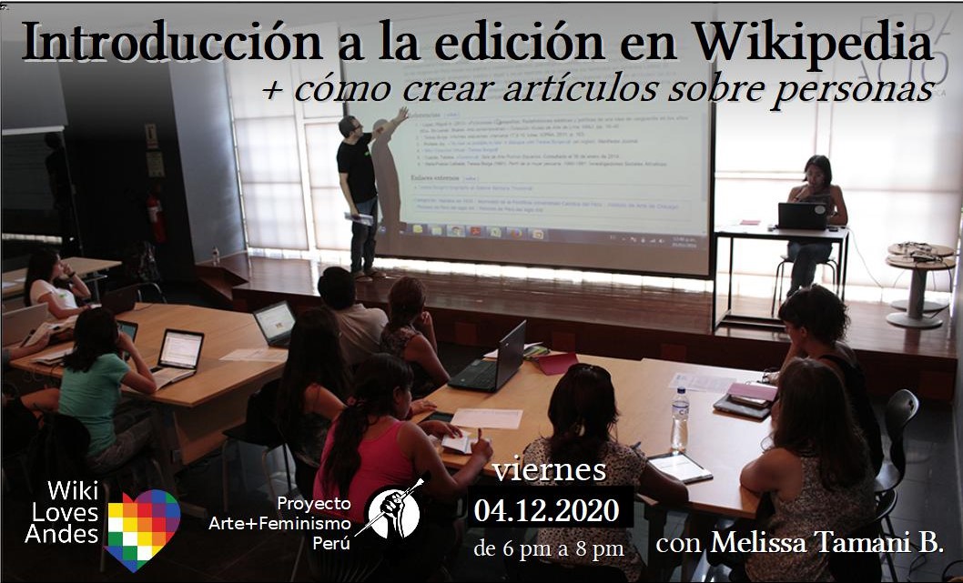 VIERNES 04 DE DICIEMBRE: Introducción a la edición en Wikipedia y cómo crear artículos sobre personas, con Melissa Tamani. De 6 a 8 pm. El objetivo del webinar es conocer las políticas pertinentes para la creación de artículos en Wikipedia en español (punto de vista neutral, verificabilidad) y profundizar en la estructura y procedimiento para crear una biografía de una persona viva en la enciclopedia virtual.