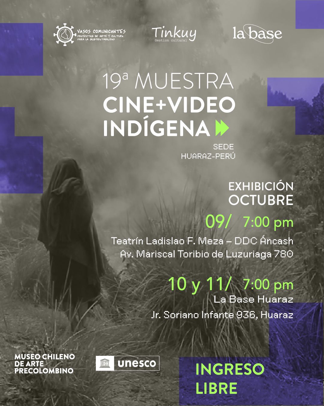 Por segundo año consecutivo, se realizó la 19° Muestra de Cine + Video Indígena del 9 al 11 de octubre de 2025 en la ciudad de Huaraz. Esta muestra se enmarcó dentro de las celebraciones del 12 de octubre en Perú: “Día de los Pueblos Originarios y del Diálogo Intercultural”.